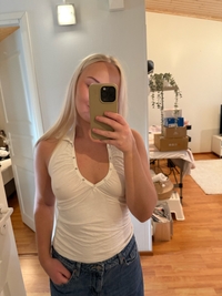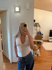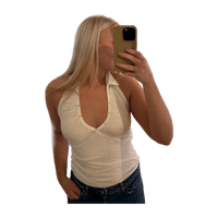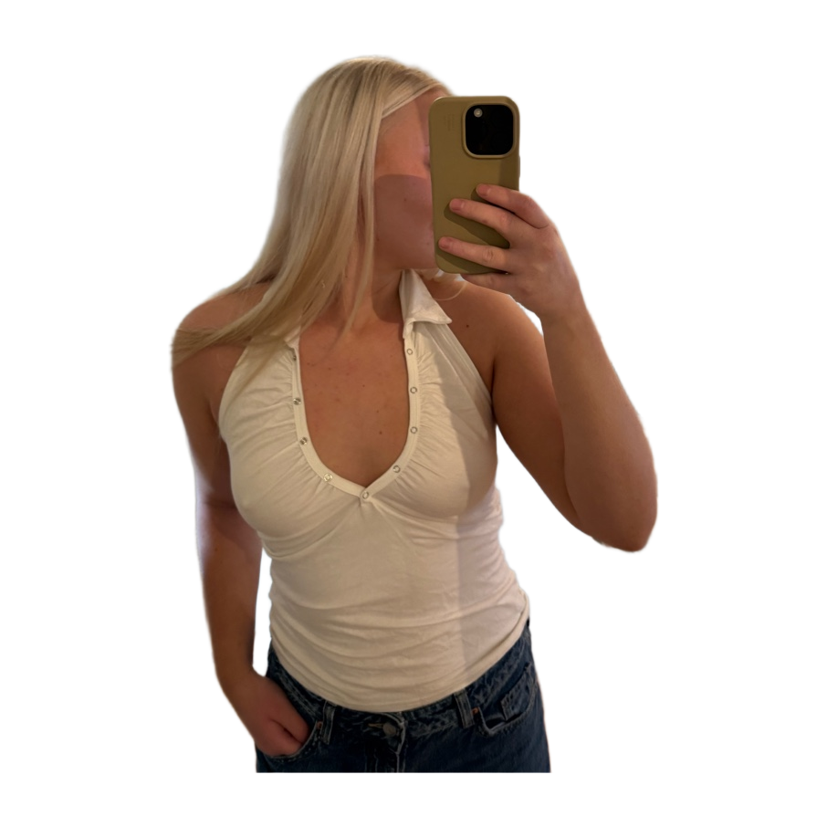 White sleeveless top with buttons