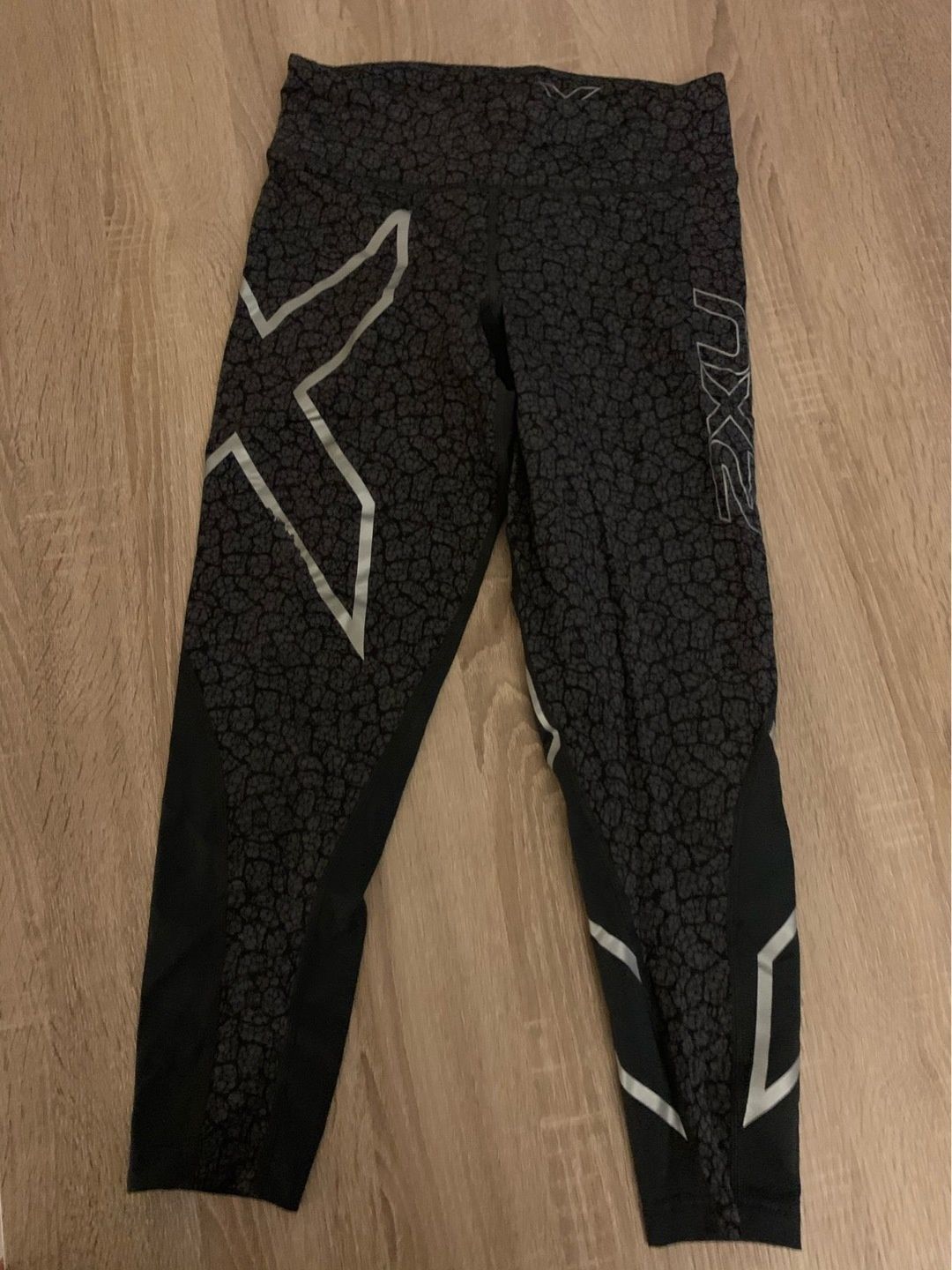 3/4 pituiset 2XU treenitrikoot. Pysyvät hyvin päällä ja ovat moitteettomassa kunnossa.