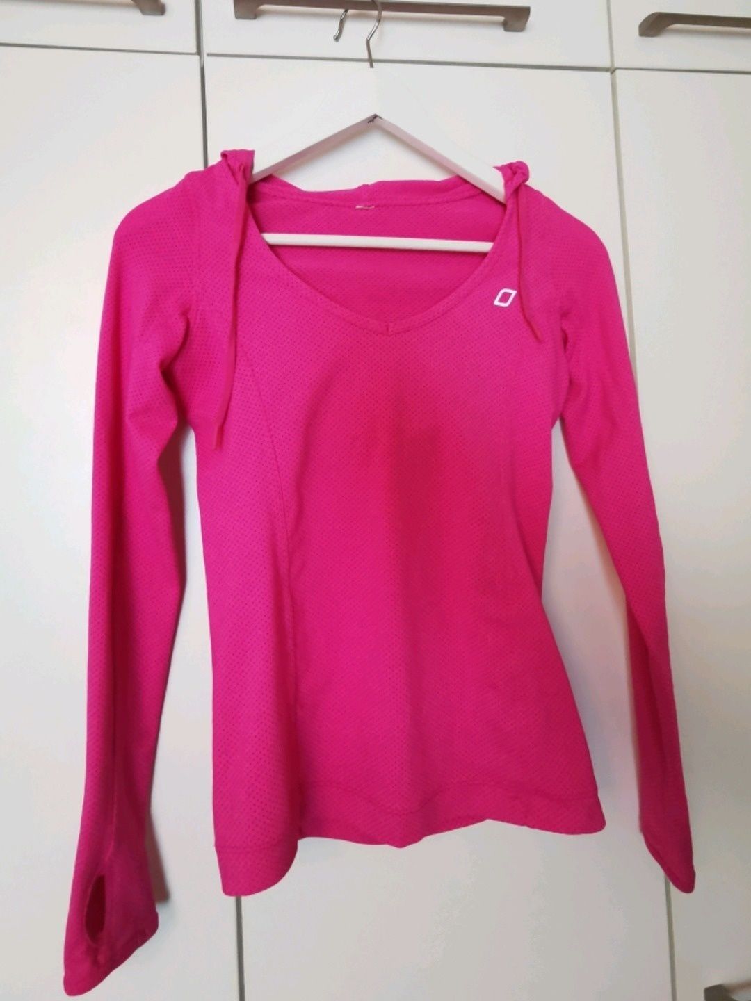 Tekninen ihana pinkki treenihuppari! Hihoissa peukalonreiät, joissa ihan pientä käytönjälkeä. Muuten ehjä ja siisti huppari. Kokolaput poistettu, itselle xs-s kokoiselle sopiva.