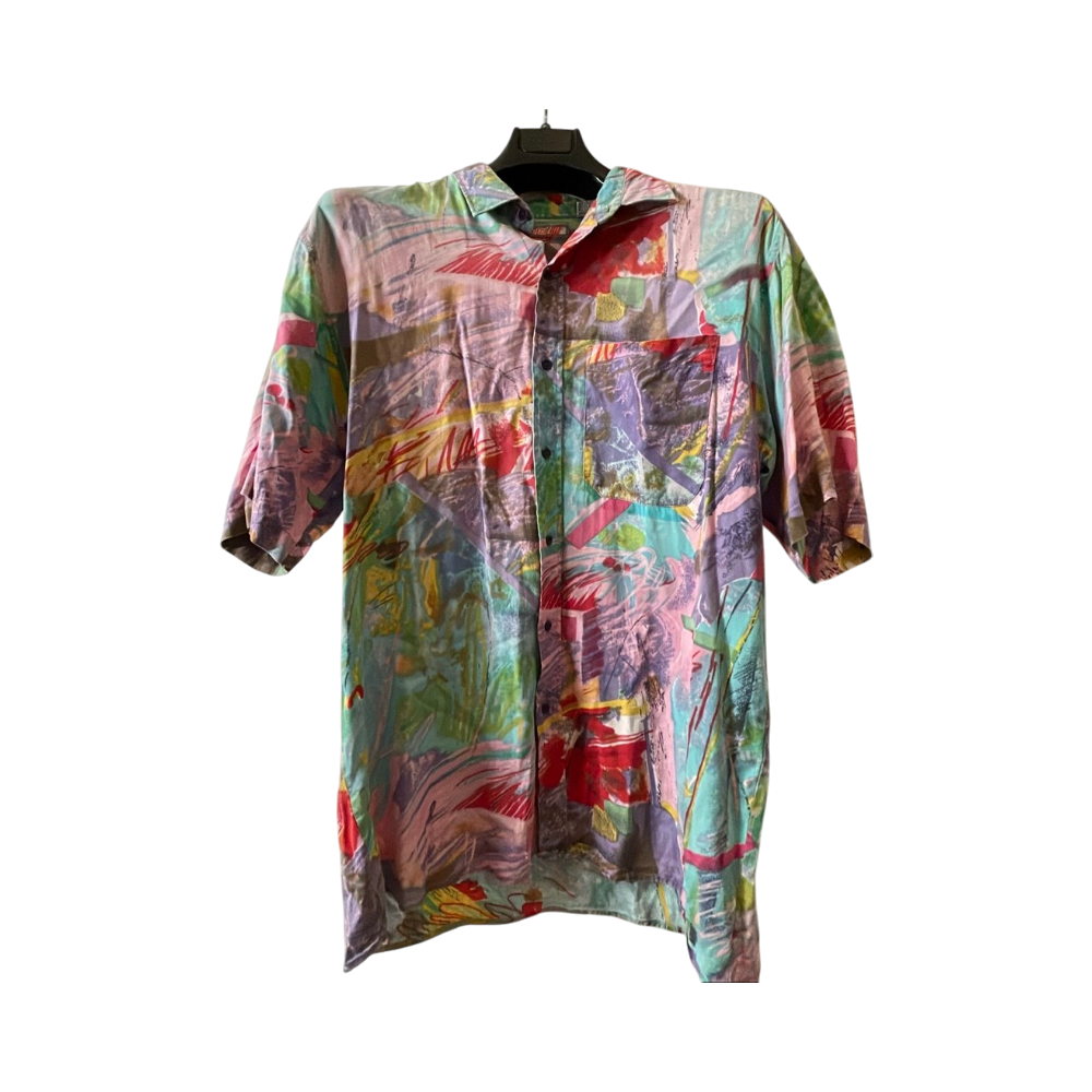 Värikäs lyhythihainen kauluspaita, rento istuvuus. Miesten malli. Myös nouto Lauttasaaresta. Lisätietoja pyydettäessä. Vintagekaupasta ostettuna 50€.