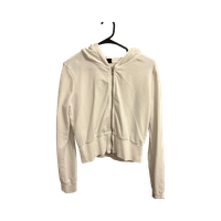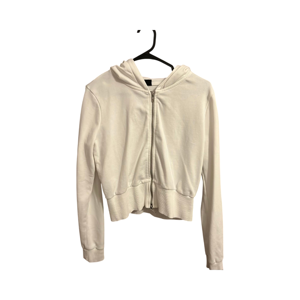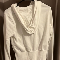 Lyhyt valkoinen vetoketjullinen huppari, hyväkuntoinen.