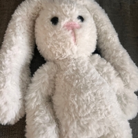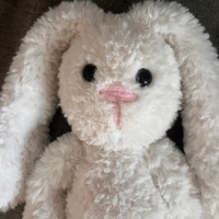 käsityönä tehty virkattu pehmeä iso pupu. tällä kokoa hieman yli 50cm. turvasilmät mutta eivät sovellu alle kolme vuotiaille, voivat irrota kovasta repimisestä tms.