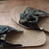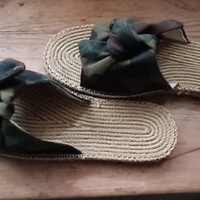 Naisten sandaalit beige pohja ja vihreä rusettikoriste. Uudet. Koko on 37, mutta