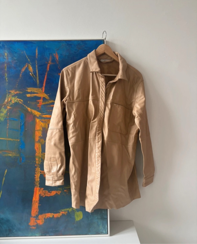 Beige leather shirt jacket