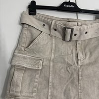 Uusi Beige farkkumainen minihame, taskut ja irrotettava vyö. Koko 40 🙂