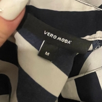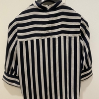 Sinivalkoinen raidallinen pusero, koko M. Uusi ja käyttämätön. Takana veroketju. Liukas kangas.