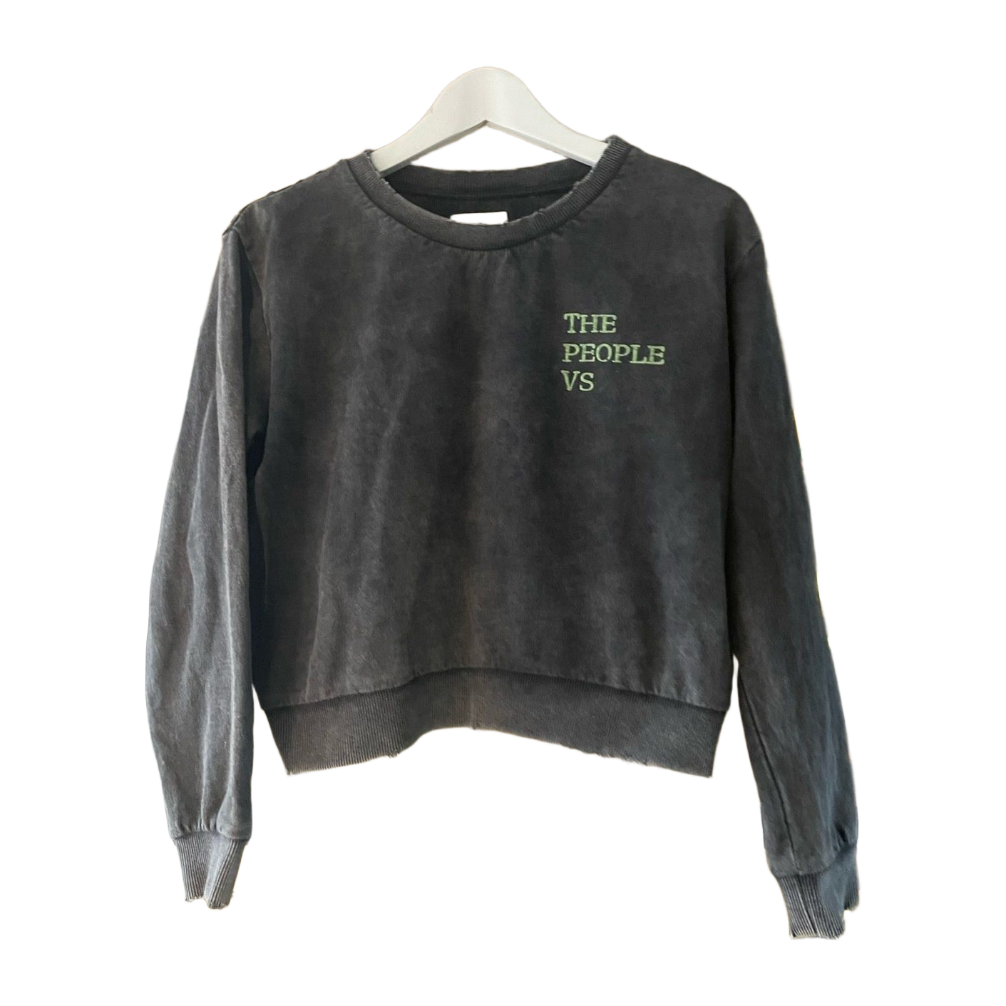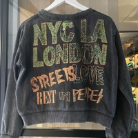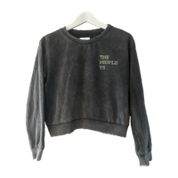 Australialaisen streetwear merkin collegepaita. Cropattu malli, kulunut harmaa väri ja rikottu resorin / kaula-aukon reunat.