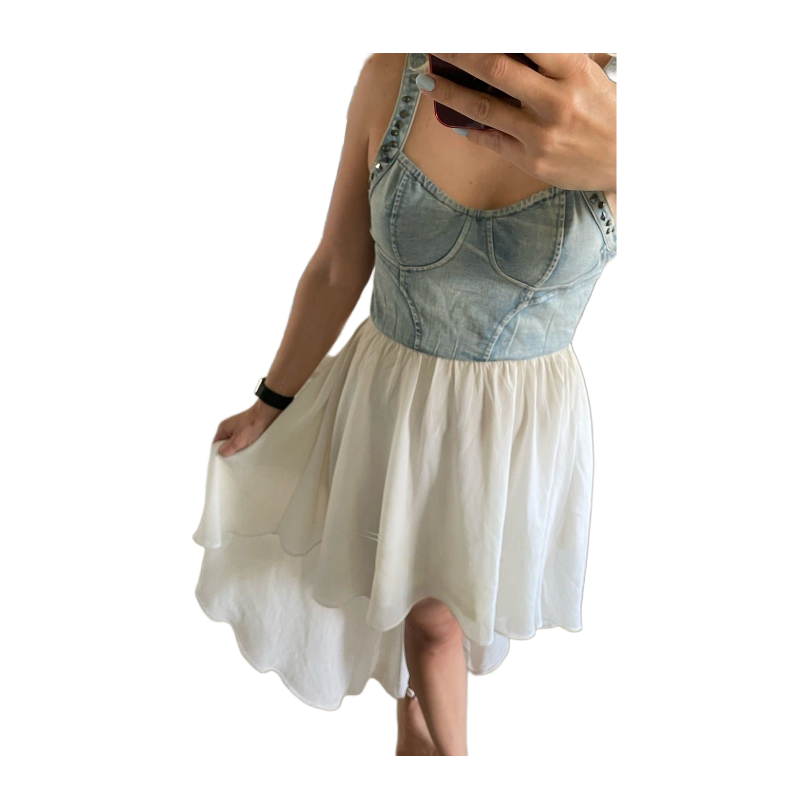 - Yläosa farkkua jossa niittiyksityiskohdat