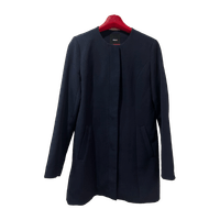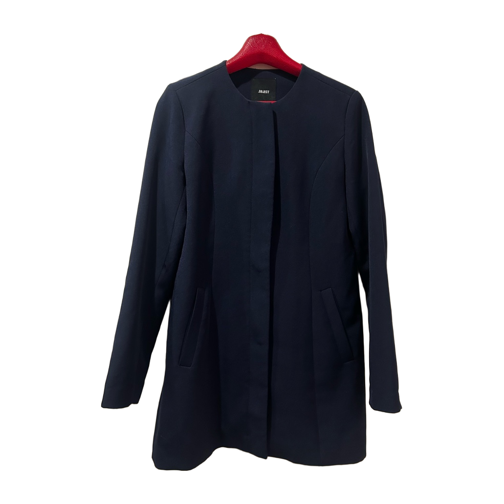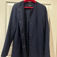 Naisten tyylikäs ja lämmin sininen takki, vetoketjulla ja napeilla.