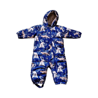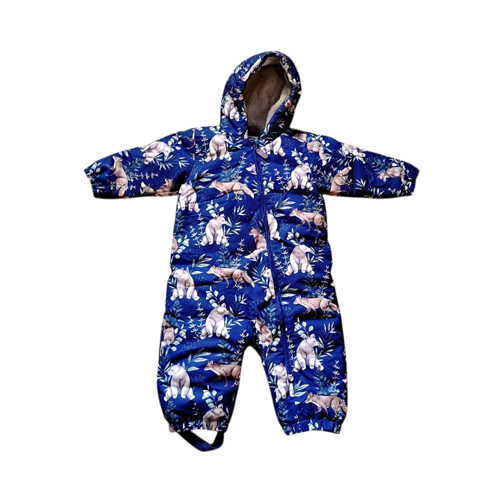 Lämmin ja pehmeä toppahaalari vauvalle, eläinkuvioitu. Ainoana puutteena toinen jalkalenkki puuttuu ja pienet reiät lahkeensuun sisällä (kuvat). Ei muita käytön jälkiä.