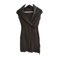 Uudenveroinen laadukas ihana harmaanruskea tyylikäs neulemekko, edessä avattava koristesolki. Miellyttävän pehmeää materiaalia. Koko S. Puuvilla/viskoosi/polyamidi.