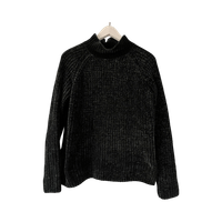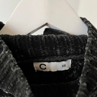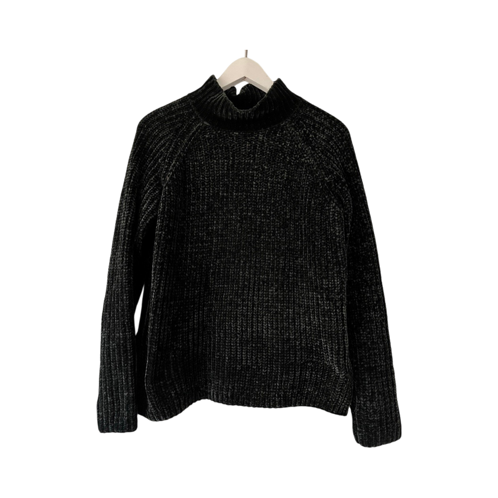 Pehmeä samettineule poolokauluksella, lämmin. Koko XS ja väri tummanharmaa / musta