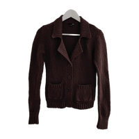 Hyväkuntoinen ihana siisti neuletakki kivoilla yksityiskohdilla. Paksuhkoa neulosta, mukana varanappi. Koko S. Puuvilla/akryyli