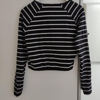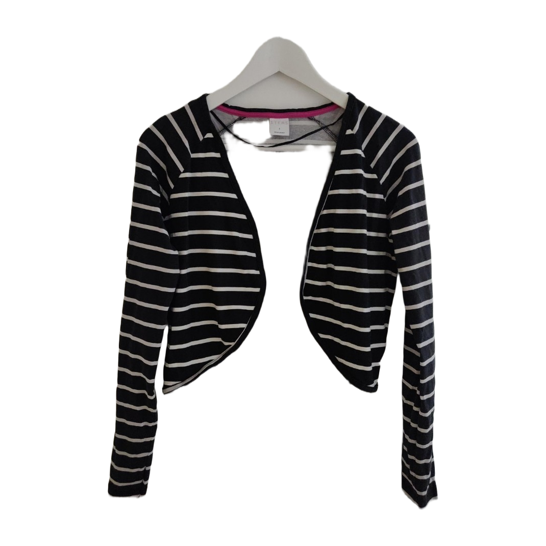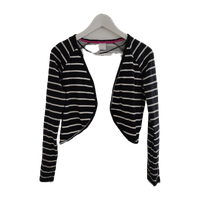 Hyväkuntoinen ihana musta-valkoraidallinen trikoobolero, koko S. Orgaaninen puuvilla/elastaani