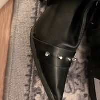 Nilkkapituiset mustat niittikoristeiset saappaat, korko noin 5 cm.