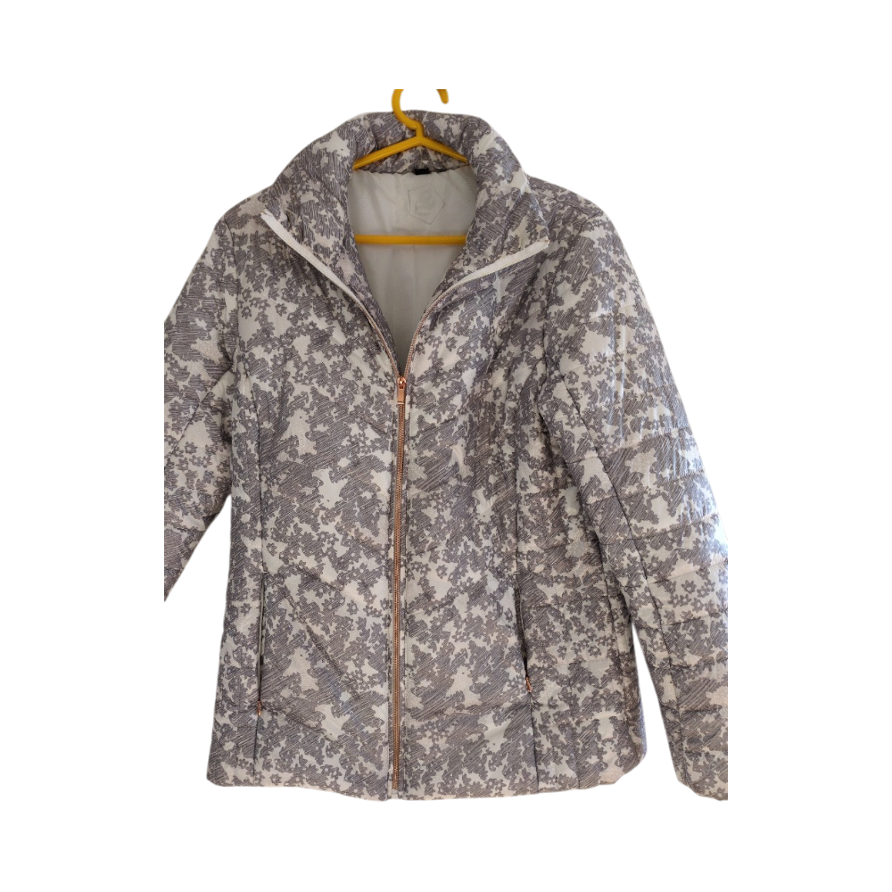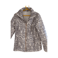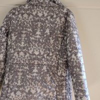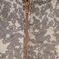 Kevyt tikattu kuviollinen kevättakki, vetoketjulla ja taskuilla.