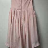 Hihaton vaaleanpunainen juhlamekko, vetoketju takana. Koko 38. Pituus edestä n. 70 cm, takaa n. 80 cm