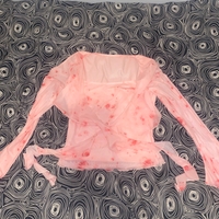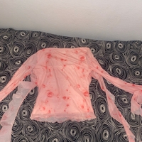 Vaaleanpunainen ruusukuvioinen mesh-toppi