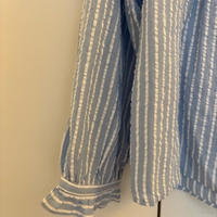 Pitkähihainen sinivalkoraidallinen pusero, napillinen kaulus. Kerran käytetty. Myynnissä myös muualla!