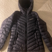 Täyte on 90 % ankanuntuvaa ja 10 % höyheniä, päällikangas ja vuori 100 % polyamidia. Takki on kevyt mutta pitaa lämmön hyvin.