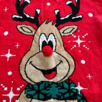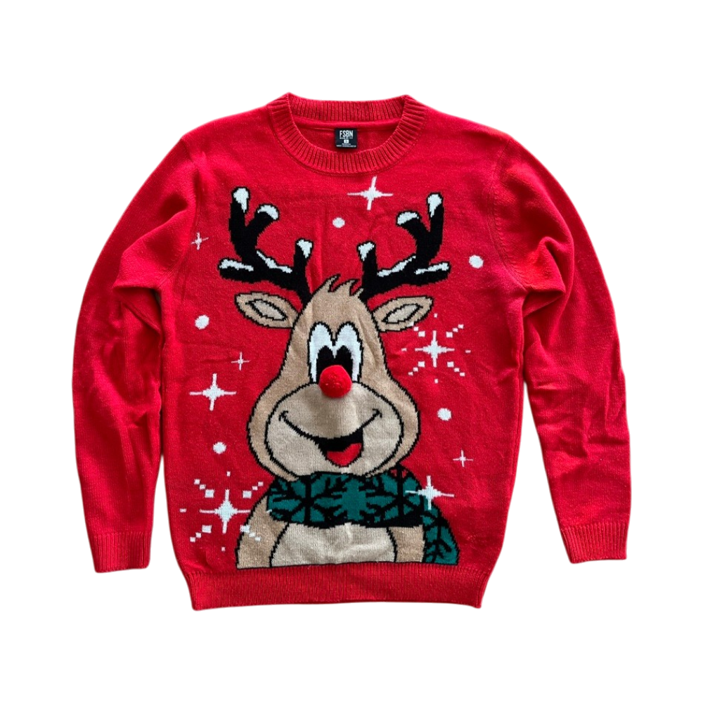 Punainen, pitkähihainen miesten New Yorker FSBN JOULUPAITA, 100 % polyakryyliä. Ei kotieläimiä taloudessa.
