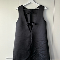 Kerran käytetty H&M pikkumusta, jossa selkäpuolella avoin selkä ja rusettiyksityiskohta.