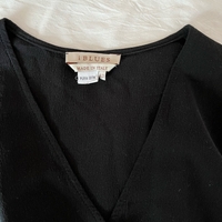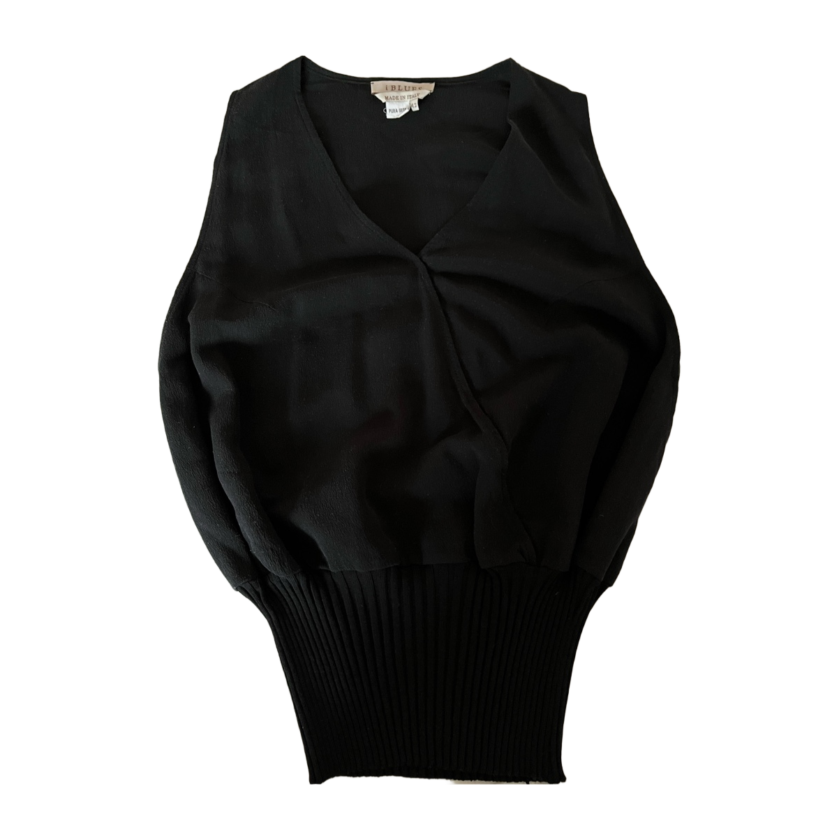 Naisten musta silkkinen (kangas) hihaton toppi, joustava leveä resori helmassa. Italialainen koko 42 vastaa noin kokoa 34-36.