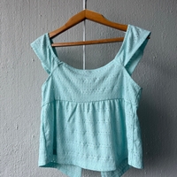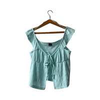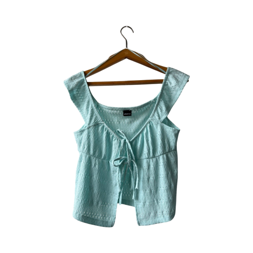 Gina Tricot turkoosi avonainen toppi, jossa solmittava etuosa. Koko M.