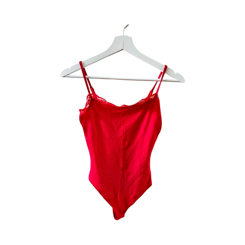 Punainen body pitsireunuksella, koko XS, uusi
