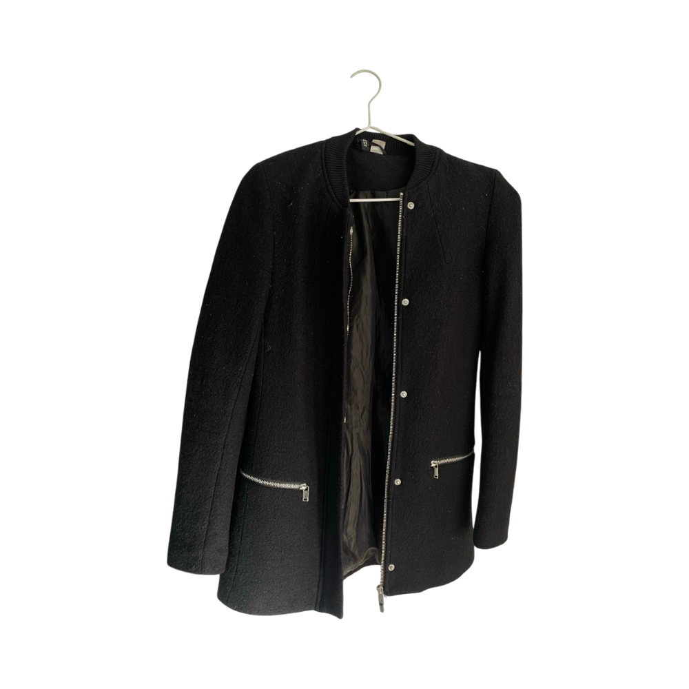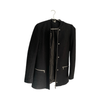 Mustat pitkä takki hopeisilla vetoketjuilla, koko EU34.