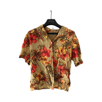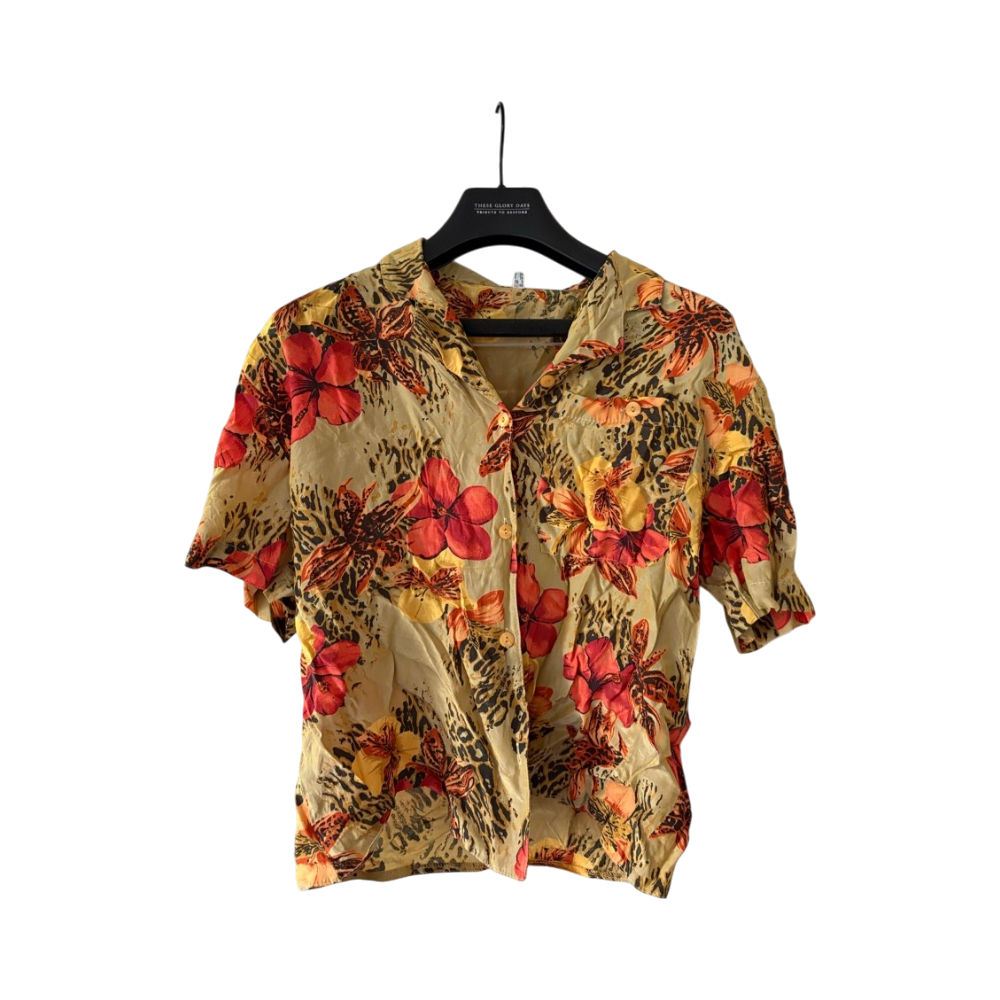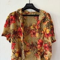 Vintage-tyylinen, lyhythihainen nappipaita kukkakuosilla. Koko S-M.