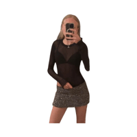 Long-sleeve sheer ribbed top, fitted and semi-transparent.
