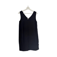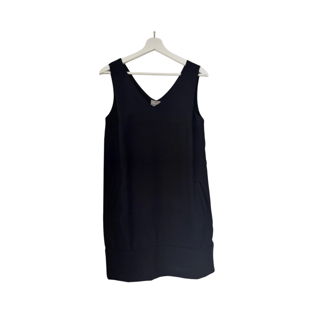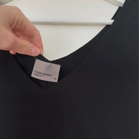 Lyhyt musta mekko, siistit saumat ja sivutaskut. Koko XS.