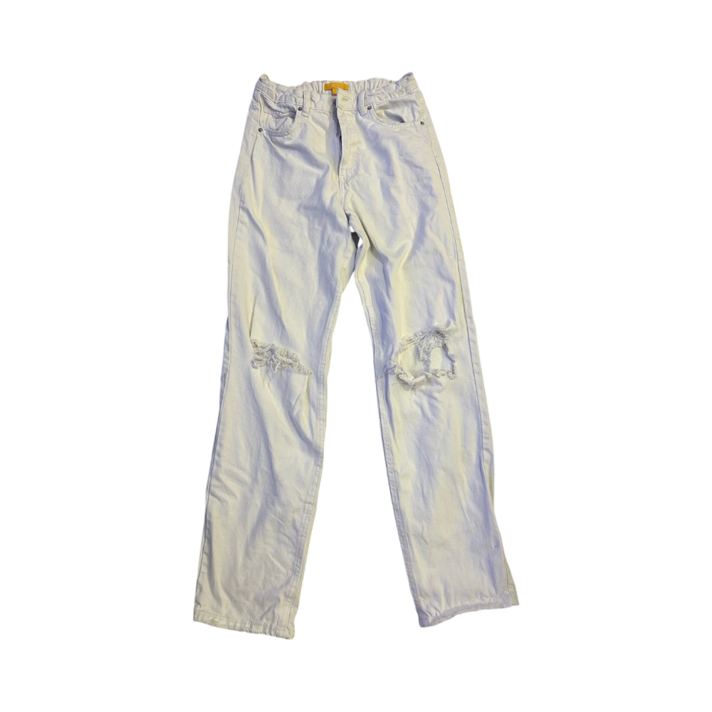 Valkoiset farkut, polvissa revityt yksityiskohdat. Koko 164 vastaa xs kokoa