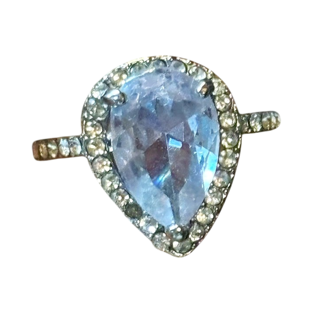 sormus pisaranmuotoisella kirkkaalla kivellä, koko S