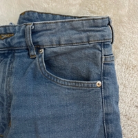Vaaleansiniset, suorat lahkeet, revityt helmat.