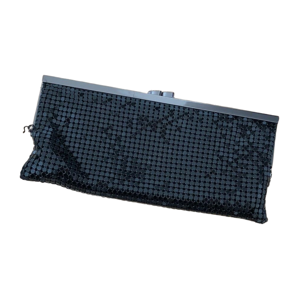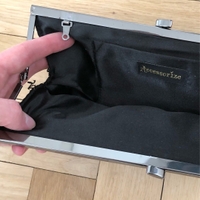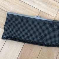Musta paljettipintainen Accessorizen laukku. Toiselta puolelta kiinnike hieman irronnut (näkyy kuvassa).