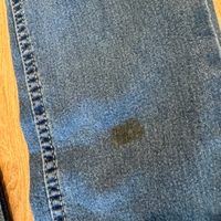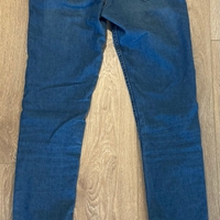 Kuvienmukainen käytetty kunto. Mielestäni ei mainittavaa vikaa, paitsi kuvissa näkyvät käyttökulumat ja yksittäinen tahra polvessa (katso kuvat). Mahdollinen pesu jää ostajalle ja tämä tahra on huomioitu hinnassa, farkut ovat olleet puhtaana kirppiksellä myynnissä, ja joku on sovittanut ja tahrinut.