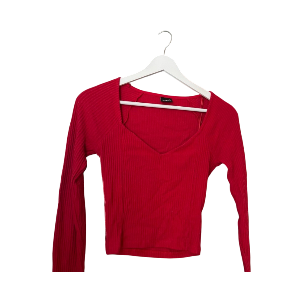 Vartalonmyötäinen ribattu pitkähihainen paita. Kiva kaula aukko