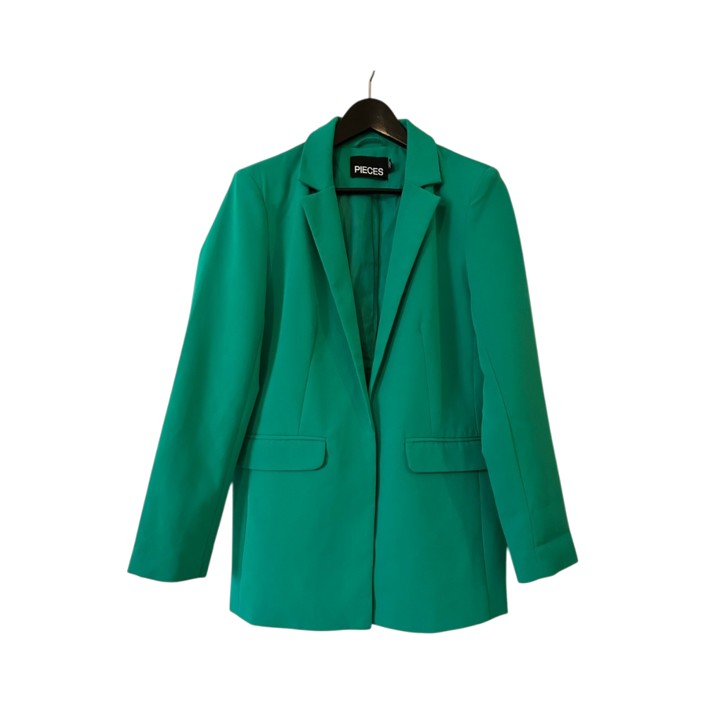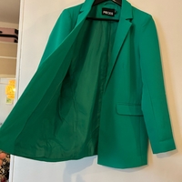 Vihreä naisten bleiseri. Piilotaskut. Pieni läiskä hiassa, siitä kuva.