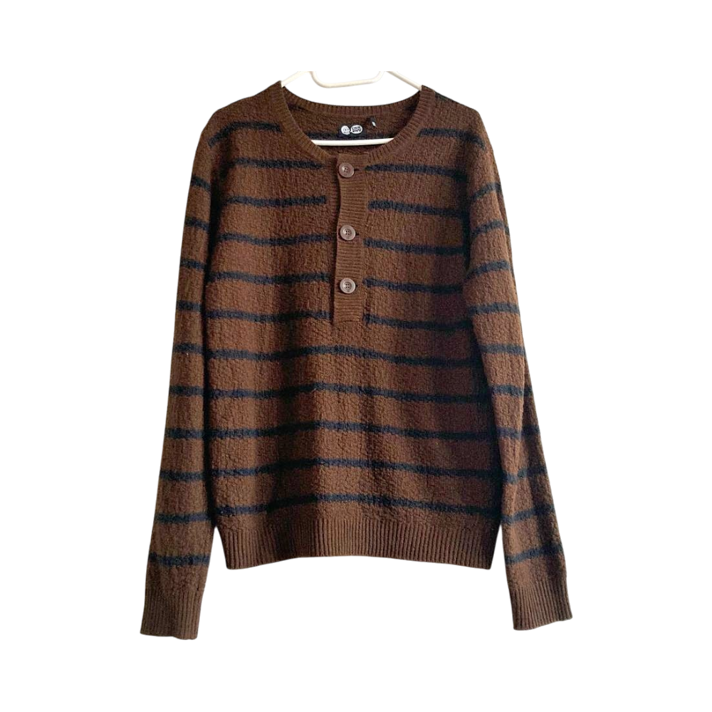 Cheap Monday John Sweater Henley Wool Blend Striped Knit Brown Black XS