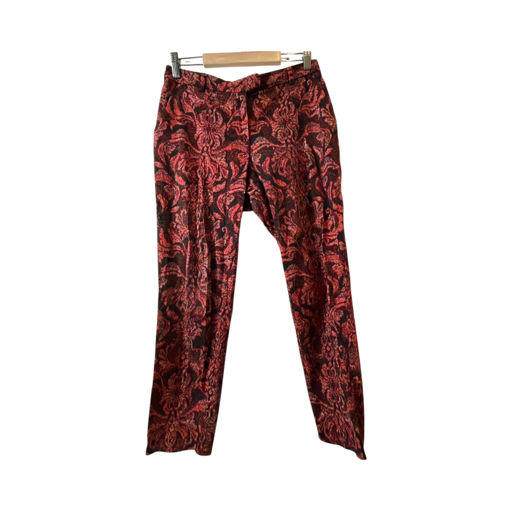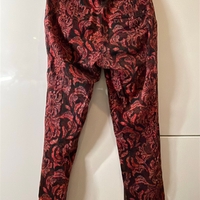 Brokaattityyliset housut, slim istuvuus, koristeellinen kuvio. Lahkeissa halkio ja ovat nilkkapituiset. Takana valetaskut. Myös nouto Lauttasaaresta. Lisätietoja pyydettäessä.
