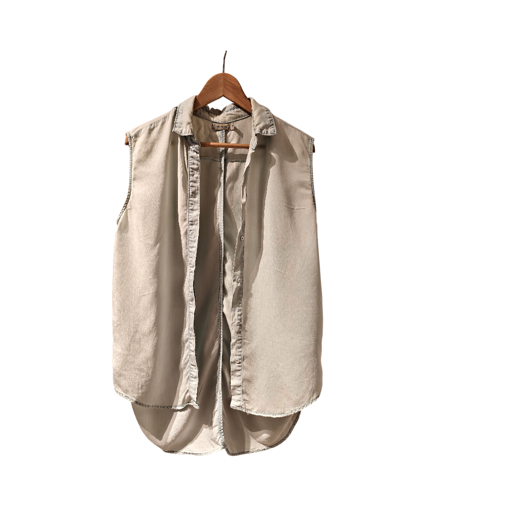 Tyylikäs ja mukava hihaton paita pusero, koko S. Edessä napitus. Pitkä malli. Materiaali lyocell