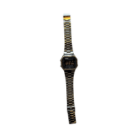 Casio Vintage Grey Metallic A168WEGG-1BEF features Casio’s iconic square design that suits all styles. The watch has a black negative LCD display and a PVD-coated surface that gives it a beautiful dark tone with a scratch-resistant finish made of stainless steel.