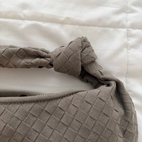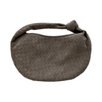 Stylish woven handbag in grey with zip closure.