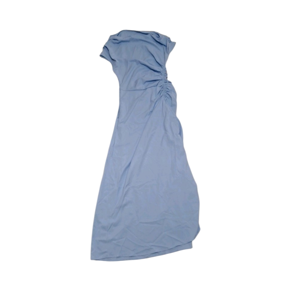 Elenzga Women's Solid Color Elegant Ruched Waist Asymmetrical Neck Dress