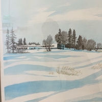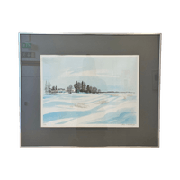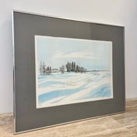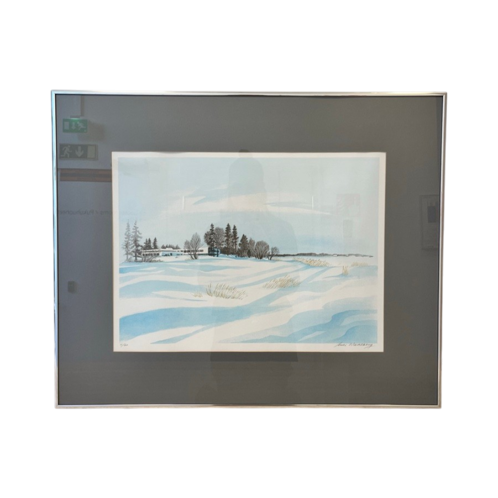 Auli Wahlbergin kehystetty taidegrafiikka. Kehyksien koko 69,5 cm x 56,5cm ja kuva-alan koko 48 cm x 36 cm
