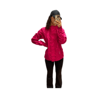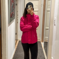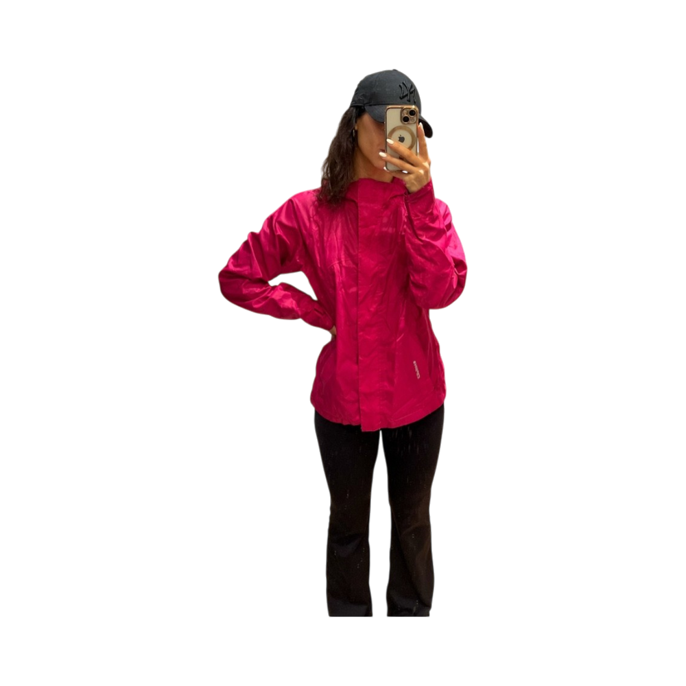 Kevyt, fuksianpunainen sadetakki vetoketjulla ja tarrakiinnityksellä