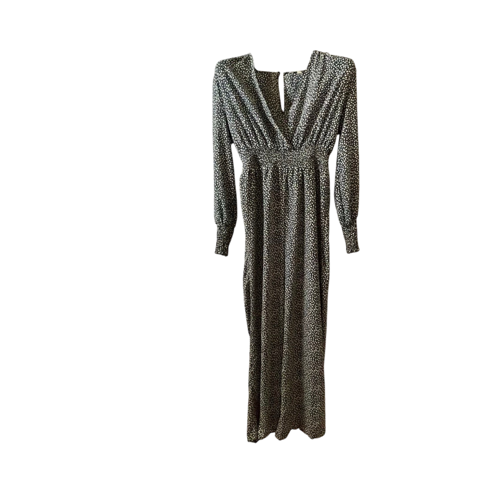 Musta haalaripuku valkoisella pienellä kukkakuviolla. Leveät lahkeet. Ohut kangas. Vyötäröllä venyvä kuminauha. Myös nouto Lauttasaaresta. Lisätietoja pyydettäessä.