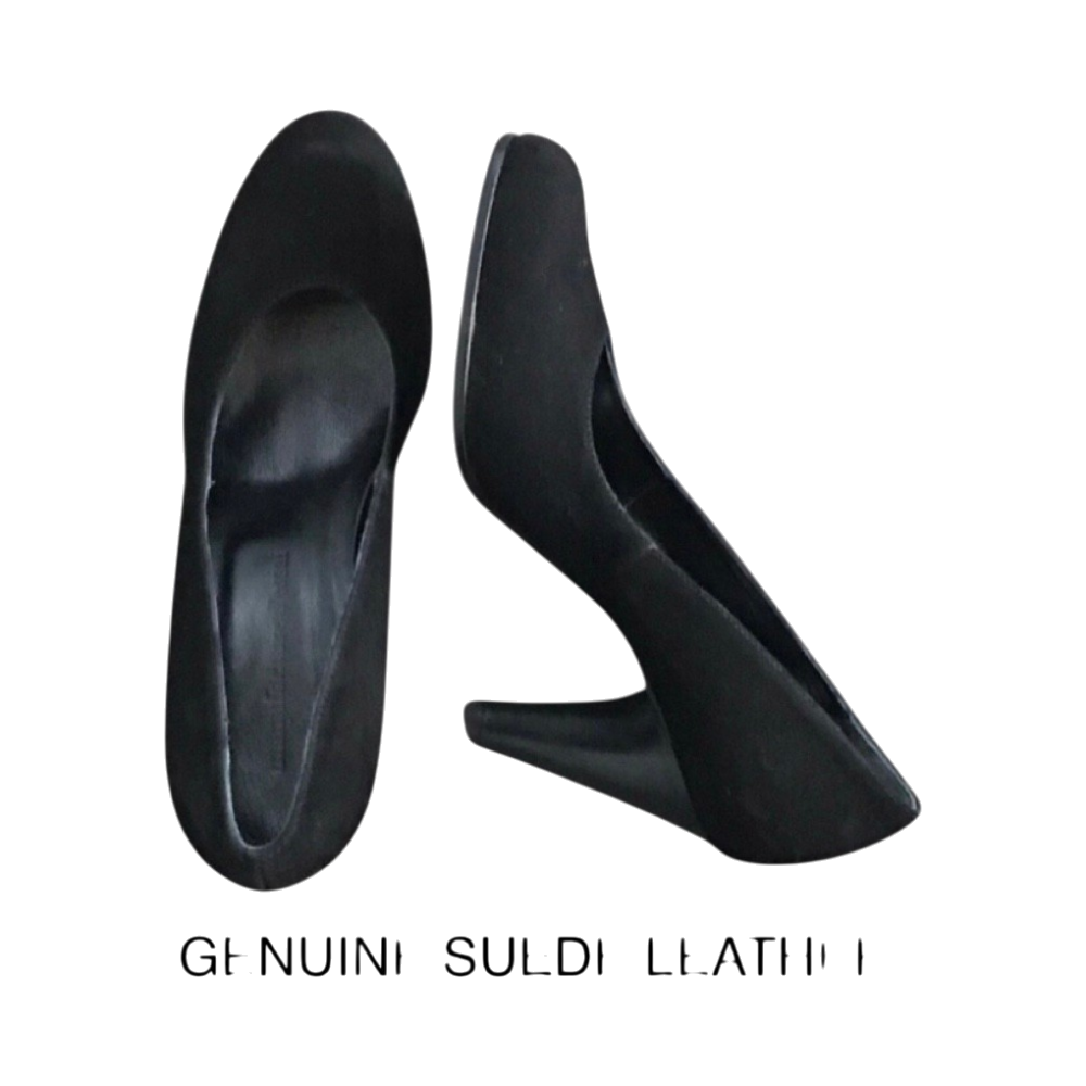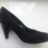 Virheettömät, ajattomat, italialaiset avokkaat mustaa mokkanahkaa. Aitoa nahkaa myös sisältä. Kaunis, pyöristetty kärki. Korko 9cm. Uutena ostetut, vain yksissä juhlissa käytetty. Alkuperäinen kenkälaatikko mukana matkassa.